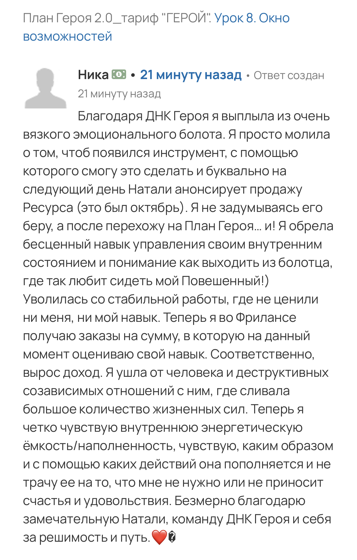 ✔️ Обратную связь от автора курса и метода, Сидоровой Натальи, в формате аудио-проверки вашего финального задания из 7 раздела (План Героя)
